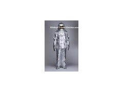 Aluminized Fire Proximity Suit is made from aluminized cloth with vapor / heat resistance lining, stitched with “ KEVLAR” thread consists of hood, visor and helmet cover with or without baset pouch. Shoes with oil and heat resistant sole, gloves with insulation. .